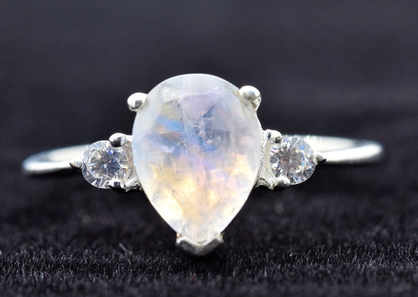 Anello con pietra di luna arcobaleno in argento 925 € 28, SHOP NOW.